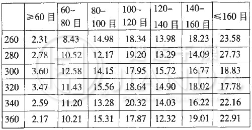 试验结果测量:1 含量测试(采用非水滴定法测得);2 白度测试(采用数字白度仪测得);3 水分测量(采用卤素水分测定仪测量);4 颗粒分布测量(每组取200g干品,经过电动振筛机的60-160目筛网筛分后,计算每个目数范围的重量比重)
